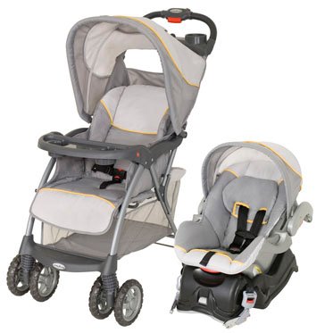 Baby Trend Travel System This travel system by Baby trend includes the No. 1 rated Flex-Loc infant car seat with base. The stroller features a multiple position recline seat, one hand fold, and height adjustable handle. It also has a front child tray that accepts the infant car seat and covered parent tray with two deep cup holders. The Flex Loc car seat features 7-position adjustable EPS head impact protection for infants 5 to 22 lbs. Flex Loc has a 5-point front adjustable harness, adjustab